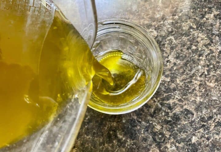 Once ready, strain the oil into a clean jar through a cheesecloth or a fine mesh strainer. Be sure to squeeze out every good golden drop.